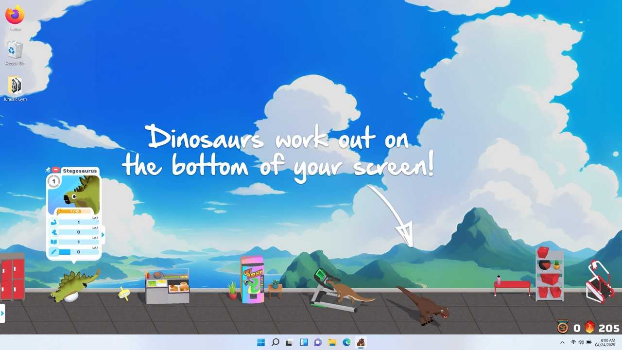 Jurassic Gym是个挺有意思的空闲管理游戏,位置在屏幕底部,玩的时候不用一直盯着,能边玩边干别的,这游戏主要就是让你管好自己的恐龙健身房,里面有好多可爱的恐龙,它们会在健身房里走来走去,还能锻炼,你可以看着它们锻炼,也能带它们出去转转,探索外面的世界,还能改进健身房的机器,孵化新恐龙,让健身房越做越大,玩起来挺轻松的,也挺有意思。