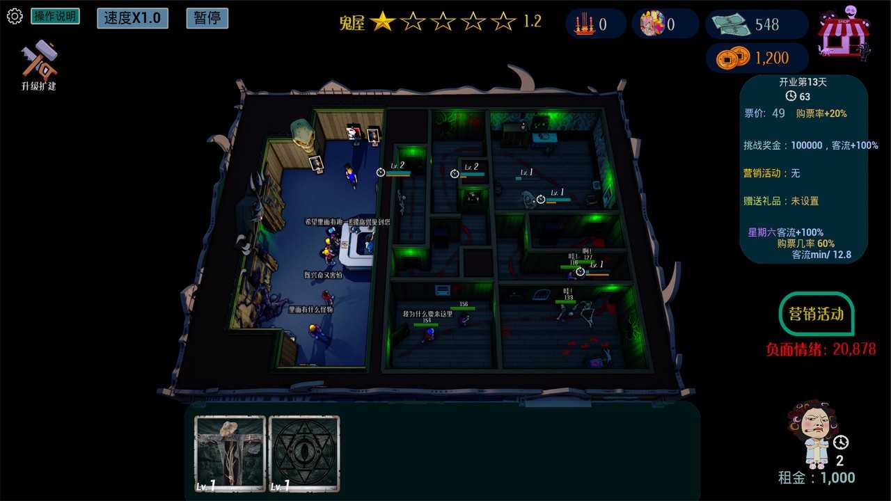开张啦,Horror House这游戏还行,玩法挺新颖的,得当神秘屋老板,用吓人机关道具把游客都吓跑,还能解锁新机关,布置在合适地方,不断升级扩建场地,让神秘屋越来越厉害,游客胆量会越来越大,得保证神秘屋不被通关,还能设置门票价格,搞活动,送礼品啥的,调整经营策略,玩起来挺有挑战性的。