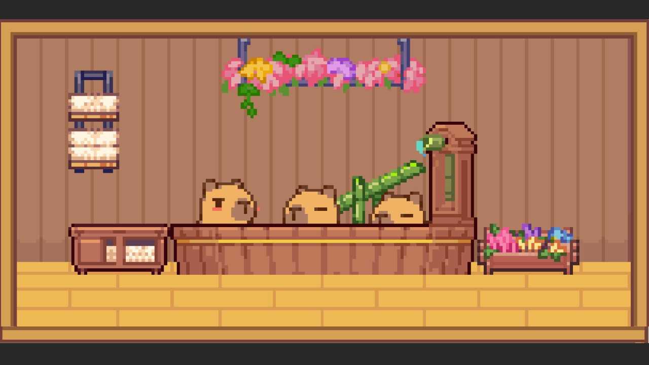 和你的小动物伙伴们一起动手建个度假中心,专门招待那些爱泡澡的卡皮巴拉们,让它们来这儿好好放松放松,房间装修得温馨点华丽点,卡皮巴拉们看了都想来,还能解锁新家具,等攒够资源了就找大狸子工头扩建,让度假中心越变越大,平时忙的时候动物伙伴们还能帮忙看着,把度假中心放在电脑桌面一边,工作娱乐两不误,画面大小位置都能调,挺方便的。