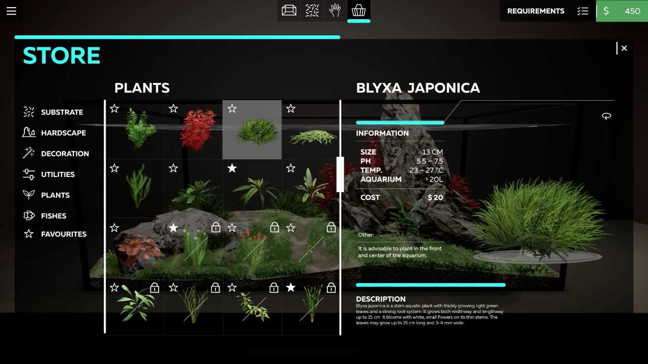 Sigur Studio制作,Games Operators和PlayWay S.A.发行的Aquarium Designer里玩家要自己动手做水族箱,从鱼缸外形到里面放啥都得自己来,水藻,观赏石,珊瑚,水草这些装饰都能选,还能按客户要求设计,客户满意了就能拿到钱,有了钱就能买更大鱼缸和稀有鱼种,一开始只有100块虚拟资金和鱼食,得合理分配买设备和养鱼,这游戏能让人体验到养鱼的休闲乐趣。