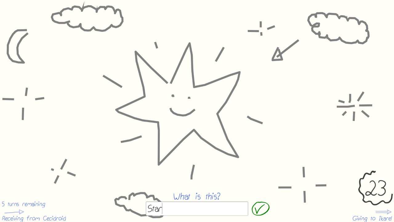 在线多人绘画猜词游戏,支持4到63人一起玩,有接龙,竞猜,茶绘,机器人和大逃杀五种模式,接龙模式要画得像主题词,竞猜模式要猜得快,茶绘模式能一起画画,机器人模式看AI猜画,大逃杀模式要画得让机器人容易认,游戏还能调像素,隐形线条,重力这些设置,让画画和猜画更有挑战,还能自己建词库跟别人分享,这游戏玩起来挺有意思的,喜欢画画猜谜的可以来试试。